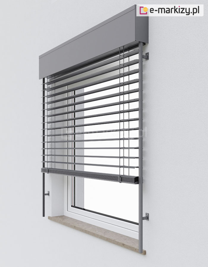 Przedstawiamy także wizualizacje żaluzji fasadowych C80. Tu możesz zobaczyć szczegóły techniczne budowy osłony.
