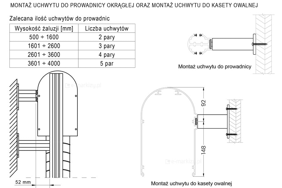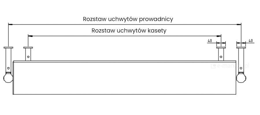Uchwyty wydawane są tylko do prowadnic. Uchwyty dodatkowe do kasety muszą być osobno zamówione. Zamawiać tylko dla kaset o szerokości powyżej 3000mm.