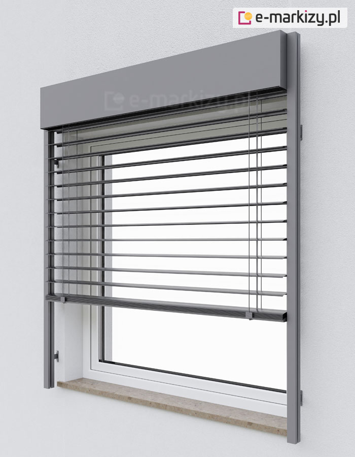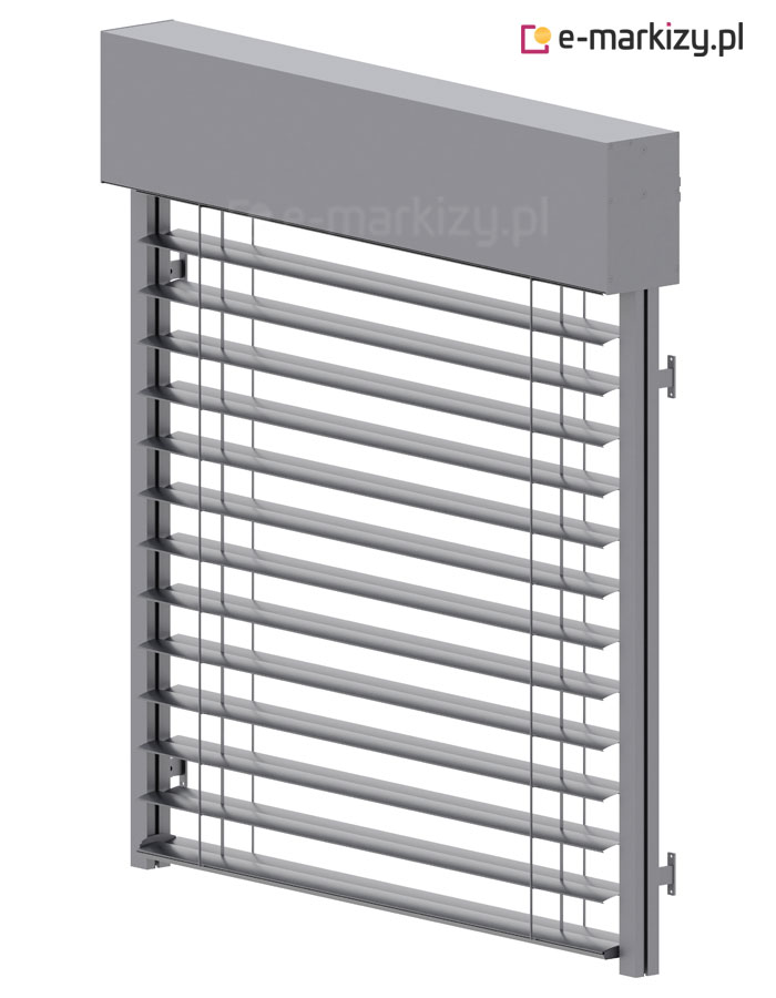 - Standardowo żaluzja wyposażona jest w napęd elektryczny, za dopłatą żaluzję możemy doposażyć w silnik elektryczny, który automatycznie zwija żaluzję i rusza lamelami.