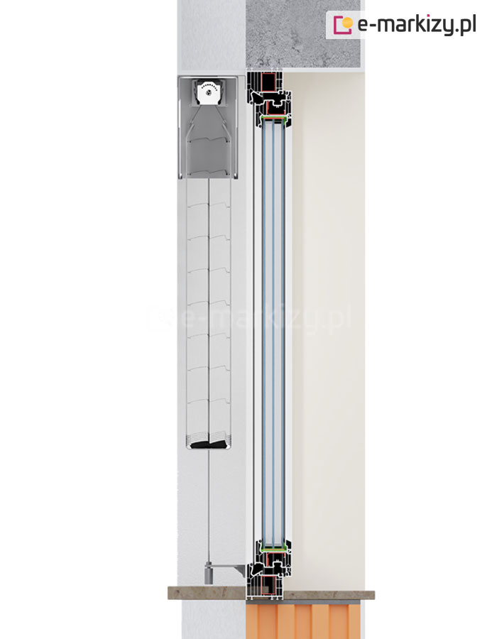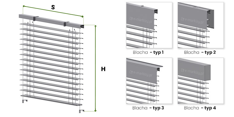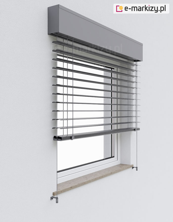 Standardowo żaluzja nie jest wyposażona w kasetę, za dopłatą można ją doposażyć w blachy osłonowe systemu.